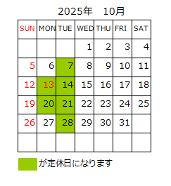 定休日 火曜日、第2第3月曜日